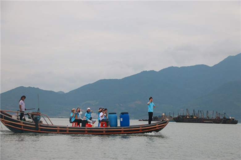 实践队成员首先拜访了下岐村最具特色的海上渔排,放眼望去,一排排“海上房屋”由木板连接,渔民们在海上房屋独特的饮食起居方式引起了实践队队员浓厚的兴趣。