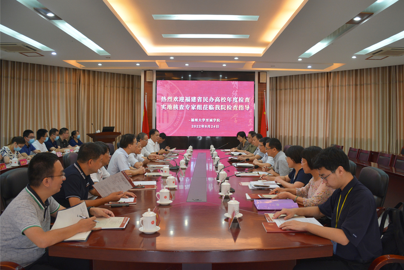 8月24日,由莆田学院副校长李文芳任组长,三明学院教务处副处长许明春、龙岩学院组织部副部长邓余振、宁德师范学院教务处副处长余碧春、闽南师范大学辅导员发展中心主任林辉、武夷学院财务处处长龚文华、省教育评估研究中心秦敏燕、省教育评估研究中心徐宇砾为成员的省民办高校年度检查实地核查专家组,莅临成人网 检查指导工作。福州大学党委副书记、成人网 党委书记张星,成人网 院长陈为旭,院党委常务副书记何希耕,党委副书记雷晓明,纪委书记翁德顺,副院长林行,副院长游毅,副院长张栋,及各相关职能部门负责人等到场迎接检查。