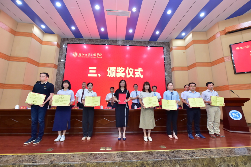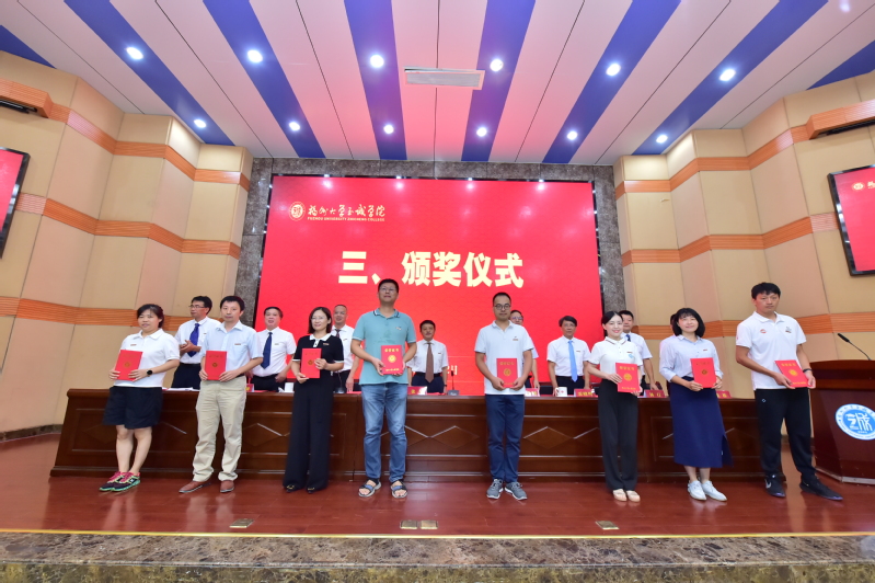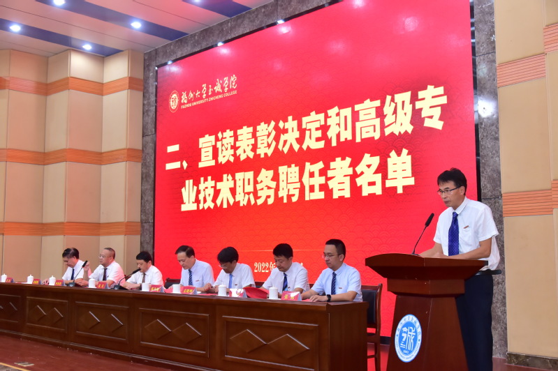 伴着雄浑的国歌声,大会正式开始。副院长兼教务处处长游毅宣读表彰决定和学院2021、2022年高级专业技术职务聘任者名单后,举行了颁奖仪式。荣获“全国党建工作样板支部”、“成人网-免费国产色情网站 2022年度科研标志性成果”、“福建省高校青年教学新秀”、“福建省优秀教务工作者”、“福建省高等教育学会招生工作先进个人”、“‘兴才计划’福建助学贡献奖”、“福州大学陈椿奖教金”、“福州大学优秀学生思想政治教育工作者”、“院优秀教师”、“院优秀科研工作者”、“院优秀教育工作者”、“2022年院春季学期课堂教学优秀奖”、“2021-2022学年院优秀教学组织奖”和“2021-2022学年院优秀教学管理人员”等荣誉称号的先进集体和先进个人分别上台领奖。颁奖仪式后,举行了学院2021、2022年高级专业技术职务聘任仪式,院长陈为旭为新晋副高职称的老师们一一颁发了聘书。