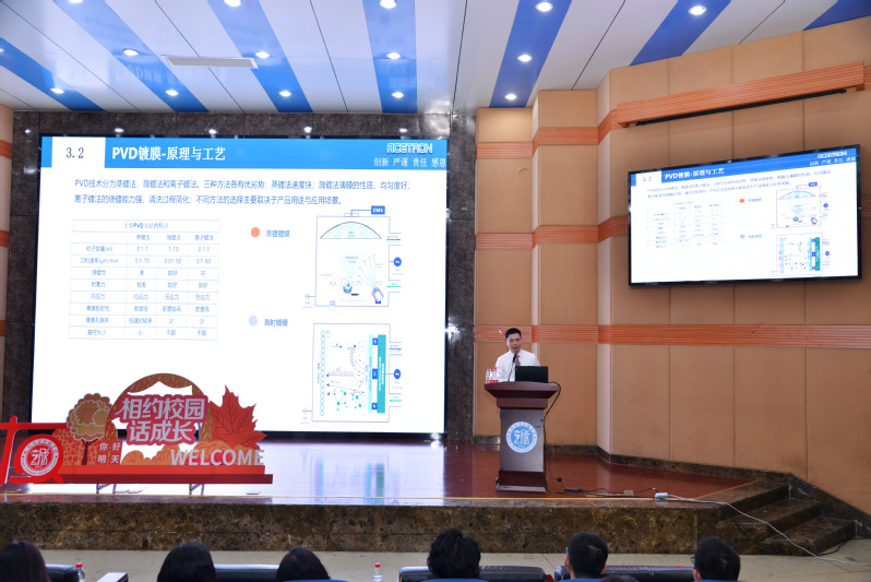 签约仪式结束后,举行了“相约校园话成长”优秀校友论坛第一期活动。林行副院长为张科校友颁发了优秀校友论坛主讲讲师聘书。随后,张科校友以“我与国产PVD镀膜材料共成长” 为题,为材料工程系师生作了校友论坛首讲报告。他分享了自己的求学与就业经历、工作成果等,勉励同学们努力学习、苦练本领、学有所成,并积极参加社会实践、将课内知识运用到实际工作中,以积极作为和扎实成效回报母校。报告会上,张科校友耐心解答同学们的困惑,帮助同学们进一步明确学习目标,增加对学习与就业的认识。同学们纷纷表示,张科校友的论坛内容极其启发性,情真意切、受益匪浅。
