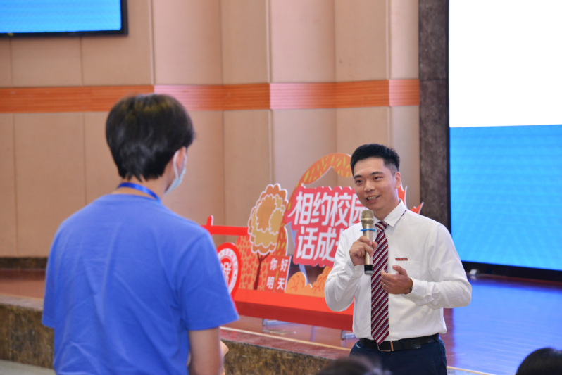 当天上午,张科校友还出席了2022届新生开学典礼并作为校友代表讲话。在领导老师们的陪同下,张科校友还重返宿舍、食堂、羽毛球馆、图书馆等地,重温校园回忆,为“喜迎党的二十大 奋进新征程”师生羽毛球联谊赛开球,并为师生签名荐书,鼓励在校大学生通过阅读增长见识提升素养。