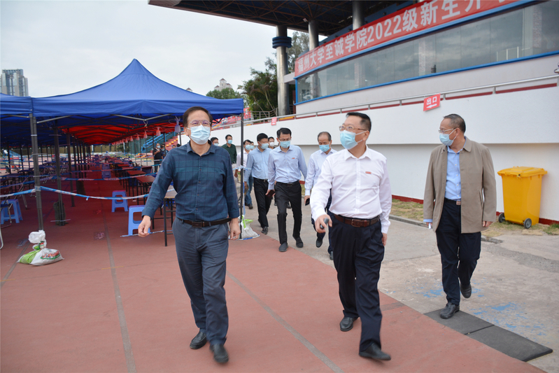 10月30日下午,福州大学党委陈国龙书记、黄身勇副书记、林键副校长等一行来到怡山校区,检查指导成人网 疫情防控工作。