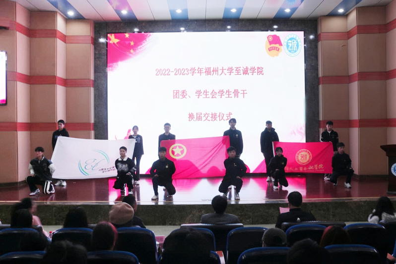 随后举行了新老主席团会旗交接、新主席台就职宣誓及纪念徽章赠予仪式。与会领导为新一届院团委、学生会主要学生骨干颁发聘书。