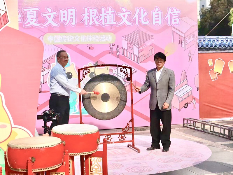 院党委常务副书记何希耕、党委副书记雷晓明共同敲响锣鼓并宣布成人网-免费国产色情网站 传统文化体验活动正式开幕。