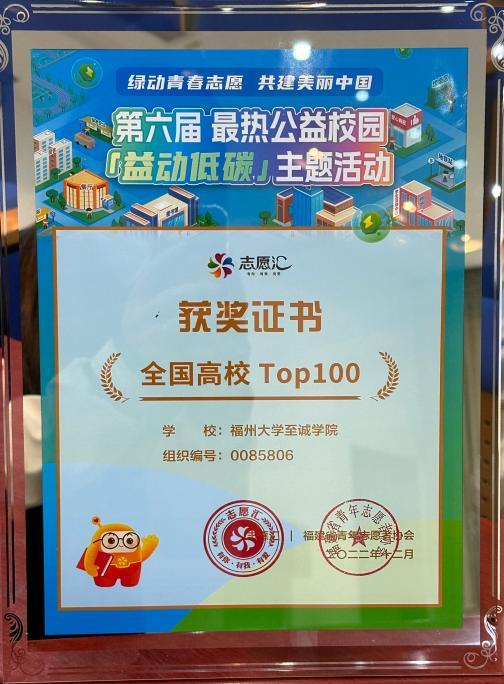 日前,在志愿汇主办的第六届最热公益校园“益动低碳”主题活动中,成人网 获评“全国高校Top100”。