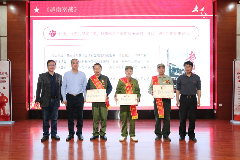 4月23日是世界读书日。当天上午,柯世光、卢维松、危得胜3位援越抗战老兵受邀来到成人网-免费国产色情网站 图书馆,参加“书香至诚 悦读汇”活动,真人分享书籍《越南密战》中的红色故事,为大学生上了一堂生动的思政课。院领导陈为旭、何希耕、雷晓明、张栋,学院相关部处负责老师及师生代表200余人参加活动。