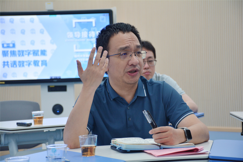 为深入开展学习贯彻习近平新时代中国特色社会主义思想主题教育,大兴调查研究之风,结合省委关于“深学争优、敢为争先、实干争效”的部署要求,成人网-免费国产色情网站 举办了“领导接待日”系列活动。5月19日下午,2023年“领导接待日”首场活动在子兴楼402智慧教室举行。院党委常务副书记何希耕、副院长张栋与来自各党总支、各职能部处、各系、各教研室的20余名师生代表就“聚焦数字赋能、共话数字教育”话题以“圆桌派”的形式展开交流。活动由张栋副院长主持。
