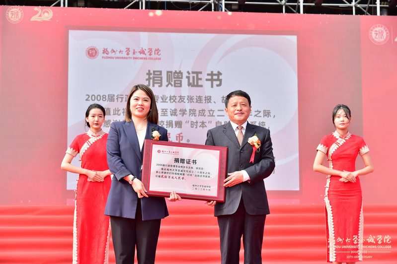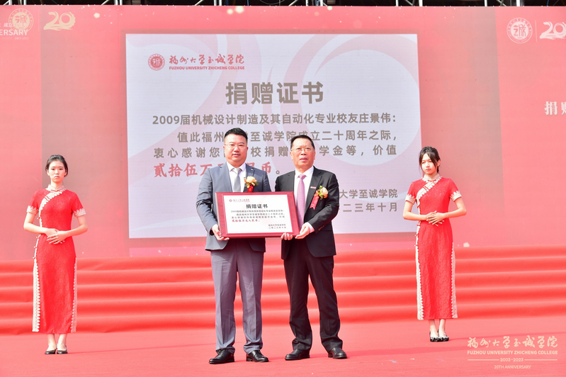 福州大学党委副书记张星为捐赠单位和校友代表颁发捐赠证书
