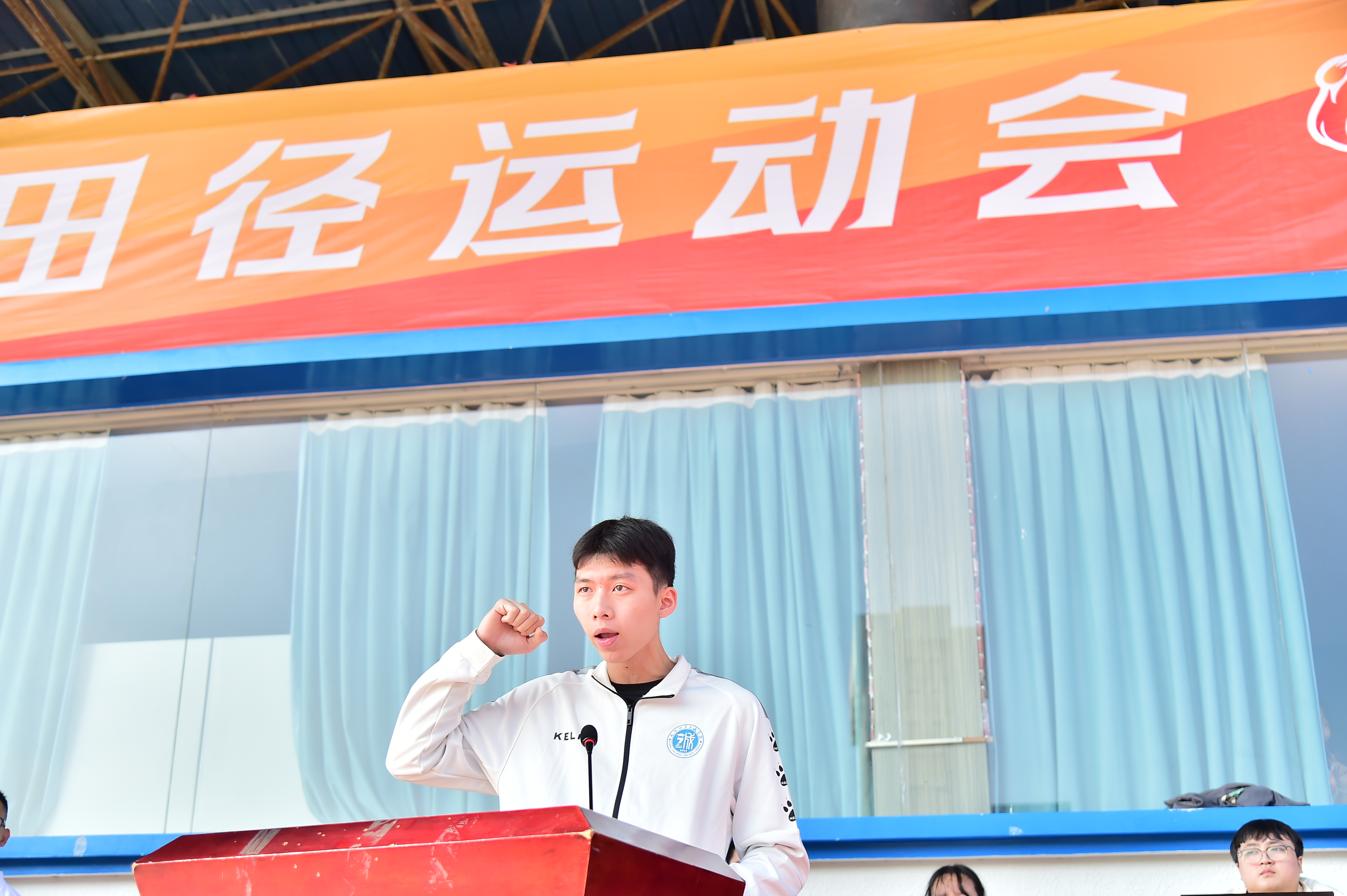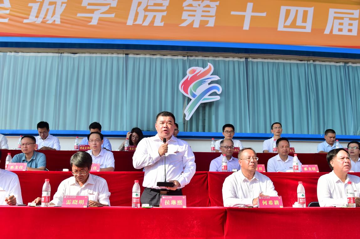 升国旗仪式后,院党委雷晓明副书记致开幕词。他总结了学院近年来在体育教育与竞技中所取得的成绩,强调要通过运动会营造热烈、浓郁的体育锻炼氛围,打造具有丰富底蕴的校园体育文化,并希望师生们加强体育锻炼、提高身体素质、砥砺意志品质,以更饱满的热情、乐观的心态、强健的体魄,刻苦学习、勇于超越、追求卓越。