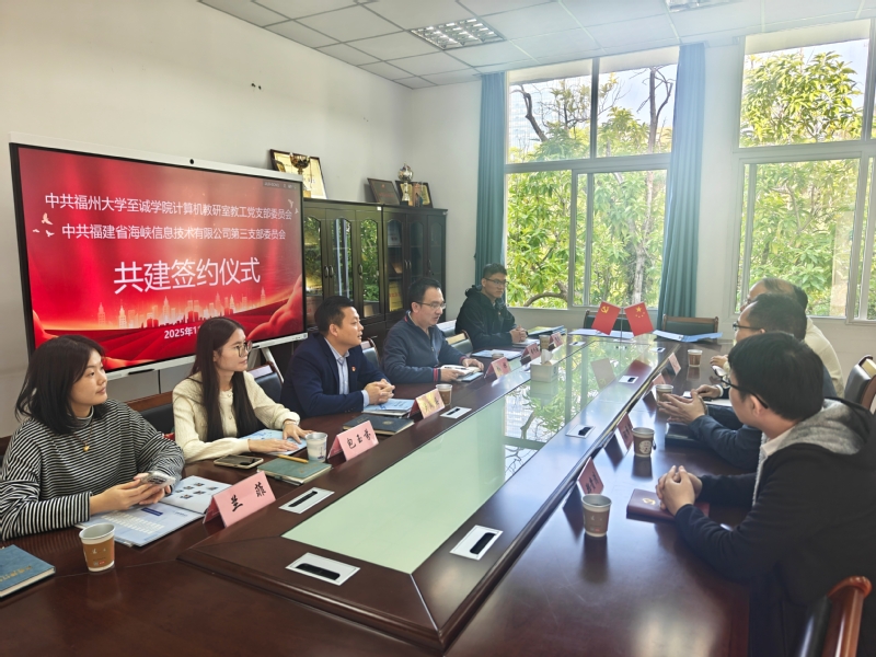 11月26日,成人网-免费国产色情网站 计算机教研室教工党支部与福建海峡信息技术有限公司第三党支部正式签署党建共建协议。双方以“党建共建,协同育人”为核心目标,围绕党建与业务深度融合开展专题交流与合作。