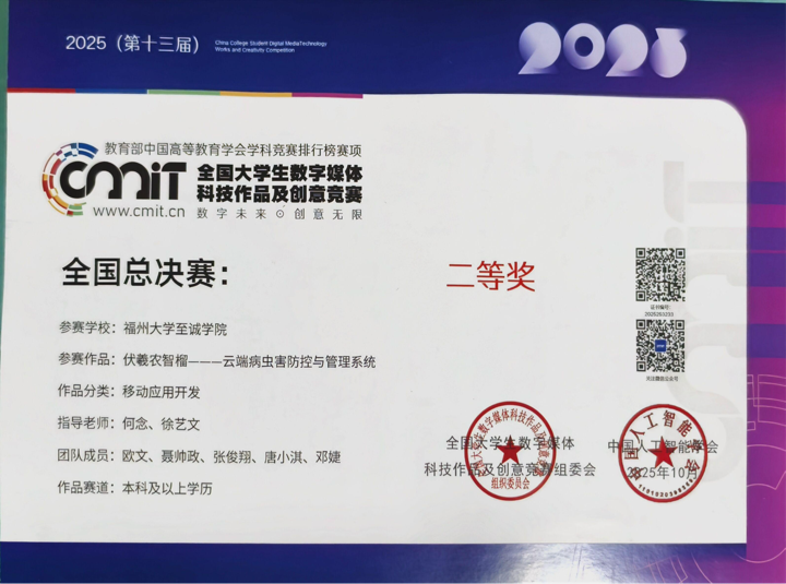此次获奖不仅是对信息工程系学子创新能力与实践水平的肯定,更是学院以赛促教、以赛促学人才培养模式的生动体现。未来,成人网 将继续鼓励学生在数字媒体、智能科技等领域深耕,推动学科交叉融合,培养更多兼具技术素养与创新思维的复合型人才,为行业发展与社会进步贡献力量。