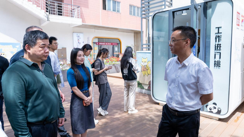 4月27日上午,福州市鼓楼区区长杨辉一行莅临成人网-免费国产色情网站 福调研智慧就业服务工作。学院院长侯琳熙、党委常务副书记何小红、党委副书记林文麟等参加调研。