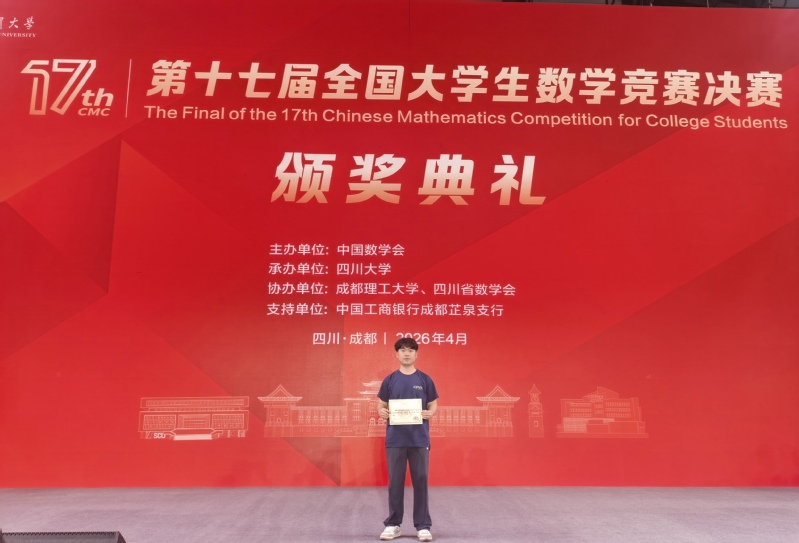 4月17日至19日,第十七届全国大学生数学竞赛决赛暨颁奖盛典在四川大学、成都理工大学隆重举行。成人网 2023级通信工程专业刘志彬同学在激烈角逐中斩获非数学专业A类全国二等奖。这是成人网 学子连续第二年成功入围该项赛事的全国决赛,充分展现了成人网 学子在基础学科领域的卓越风采与持续竞争力。